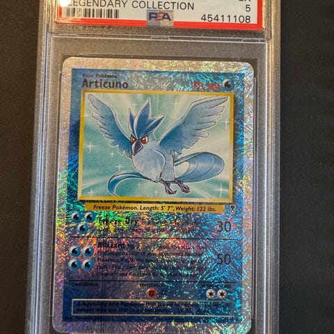 Pokémon Mewtwo Reverse Holo fra Legendary Collection i PSA 8 selges for HBO. 10 000,-