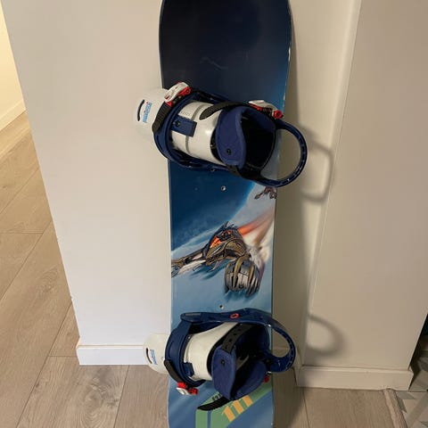 Et fint brukt snowboard 115 cm med Burtonbindinger.