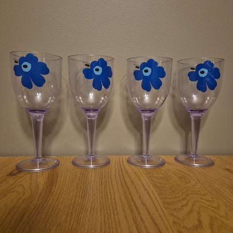 Marimekko vinglassglass i klart glass med dekorativ stett. Ingen bruksmerker, 4 stk samlet