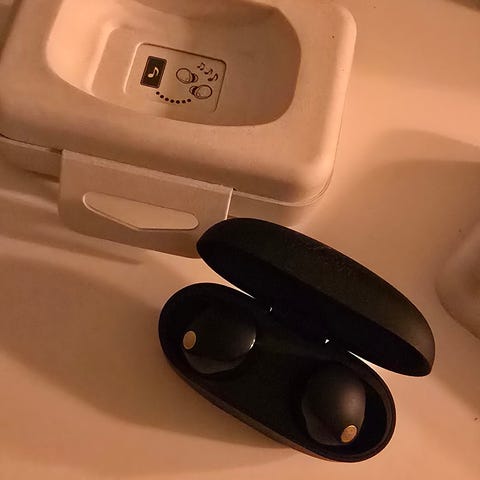 Lite brukt Sony WF-1000XM5 ørepropper med trådløs design. Leveres med original boks og tilbehør.