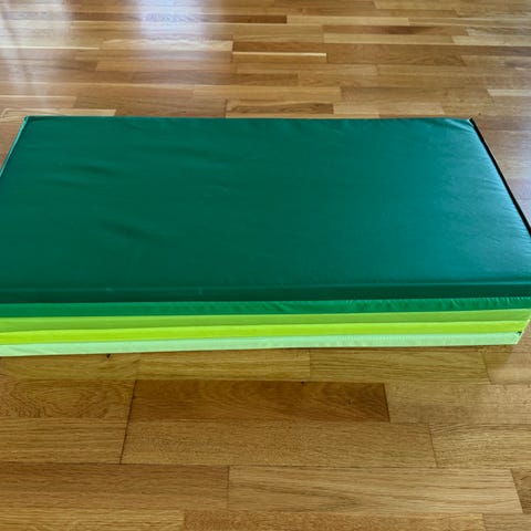 Selger 27 stykk (3 pakker) Yngri lekematte. Perfekt for når baby skal leke på gulvet, mykt for baby og bedre for gulvet. Vi hadde lekekjøkkenet stående på matta så noen av brikkene har merker etter dette, se bilde. Selges derfor rimelig. Nypris for alle ville vært 807,-