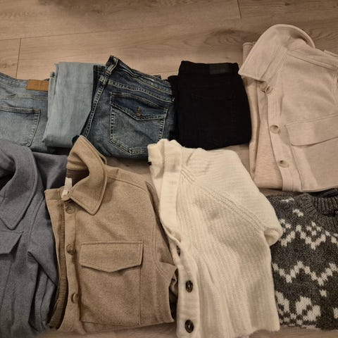 2 dressbukser fra ellos str 42/44, 2 bluser, 1 blazer, 1 strikkegenser,1 strikkekjole ,1 velurgenser