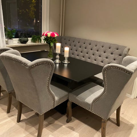 Praktisk bord med ileggsplate selgast. Ileggsplate slås enkelt opp og forlenger bordet med 40 cm. Pent brukt bortsett fra et merke på overflate som sikkert kan dekkes til.