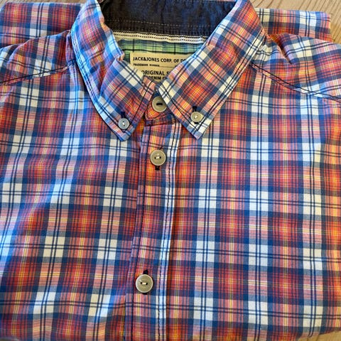 H&M skjorte i størrelse S for herre. Skjorten har et flerfarget rutemønster og langermet design.