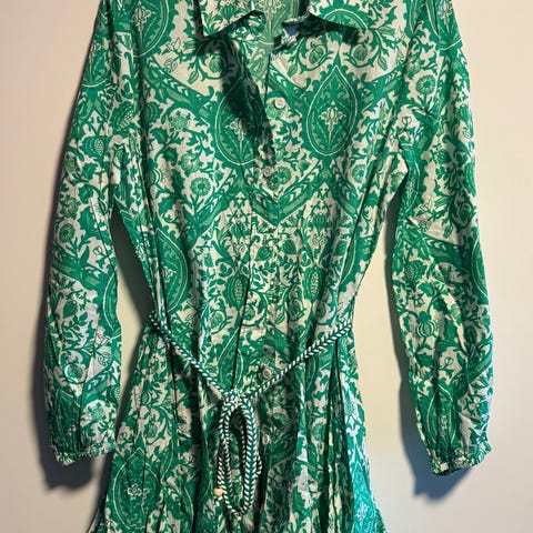 Zara sommerkjole i størrelse M, med grønn farge og floral mønster. Laget av polyester materiale.