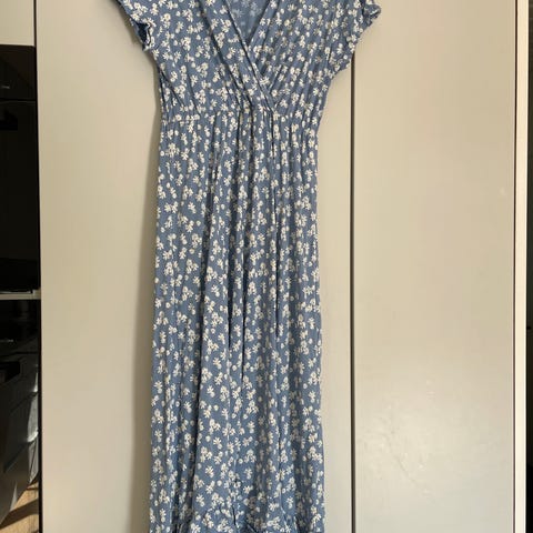 Lang lett blå kjole med blomster størrelse S