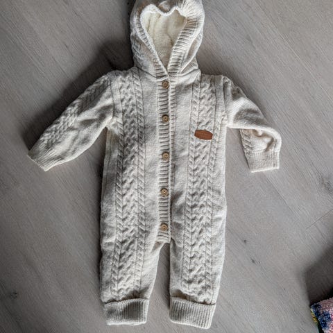 Vinterdress for barn 1 år. Ikke synlig brukt og fremstår som ny. Følger med skoposer.