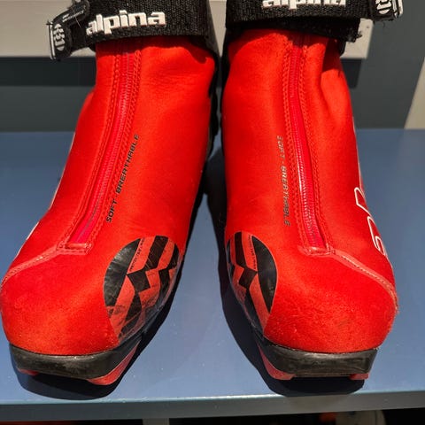 Alpina RJ Racing langrennstøvler. Lett og fin sko uten feil og mangler. Kun lette bruksmerker etter naturlig slitasje.