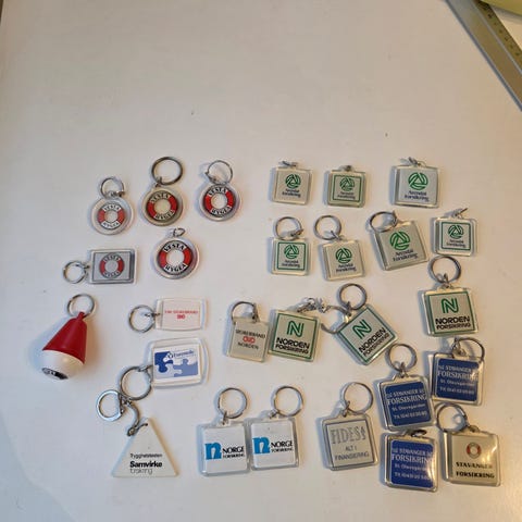 Nøkkelringer med Volkswagen, Skoda, Subaru, Mitsubishi, Fiat, Nissan, Mazda, Mercedes, Kubota, Fiatagri, Citroën. Litt bruksslitasje, et knast på VW/ Audi Jessheim Auto. Spør for tilstand. 150 kr pr stk. Sendes mot tillegg for porto. Forhåndsbetaling med vipps. Bruker ikke Fiks ferdig.