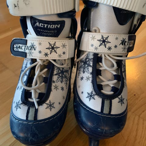 Justerbare skøyter i str 33-36. Godt brukt. Men fungerer slik de skal