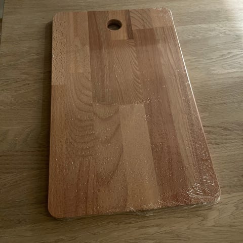 Skjærebrett i tre som er 45x30cm. Passer til bruk på kjøkken for skjæring og tilberedning av mat.