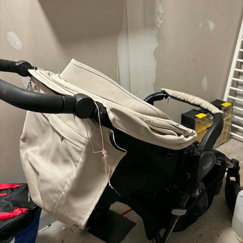 Pent brukt. Brukt av 3 barn. Kjøpt i 2013. Alt i orden med vognen og behagelig å trille i byen, på vinterføre og i terrenget.