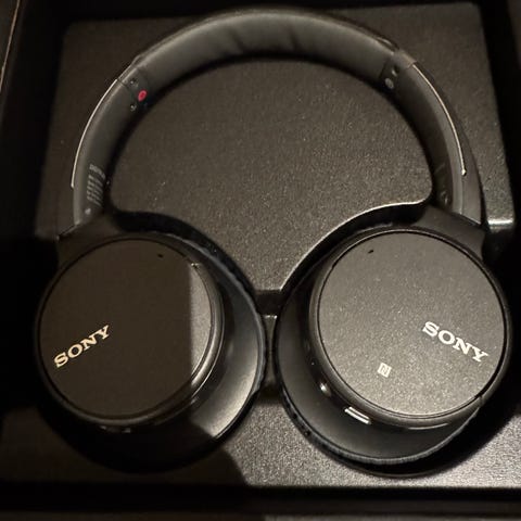 Selger et par Sony WH-XB910N trådløse over-ear-hodetelefoner i pen og velholdt stand. Hodetelefonene fungerer som de skal, og oppbevaringsetui samt ladeledning følger med.