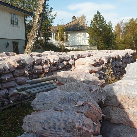 Bjørkeved i 60 Ltr sekk selges Billig