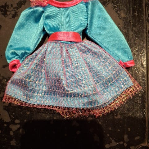Se bildene. Stroppene på toppen er slitt. Dukken er ikke til salgs.