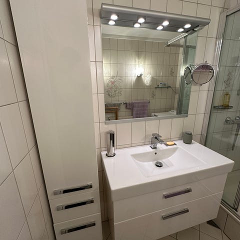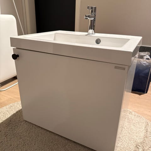 Selger et helt nytt servantbatteri i hvitt .