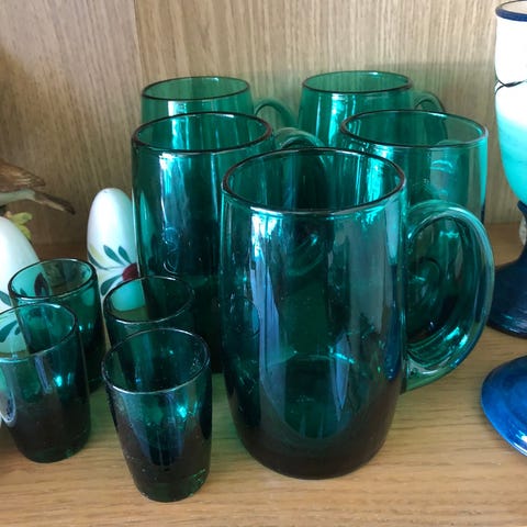 Iittala lysestake i glass med klar og blå farge. Designet for å holde stearinlys og brukt som dekorativt element i hjemmet.