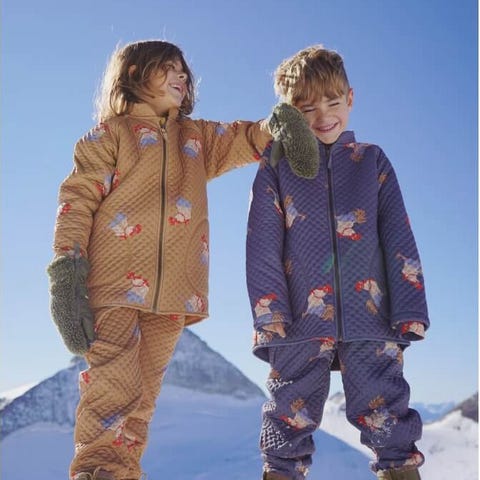 Konges Sløjd vattert bukse og jakke i brun farge, laget av nylon, bomull og polyester. Veldig praktisk og søt. Brukt som mellomlag og ytterklær vår/høst 🌸