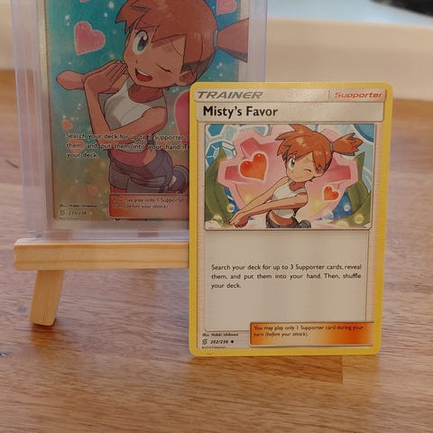 Selger pokemon kort trainer Misty's Favor fra Sun and Moon i strøken tilstand.