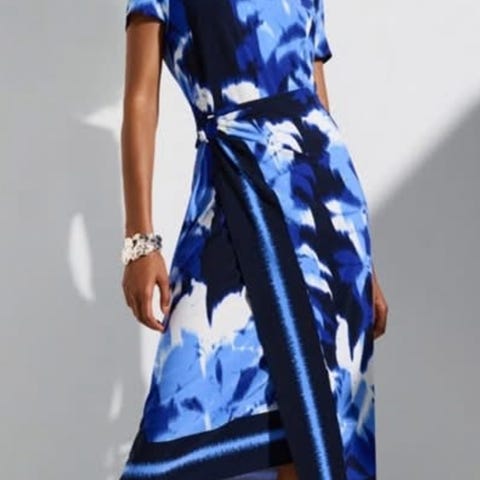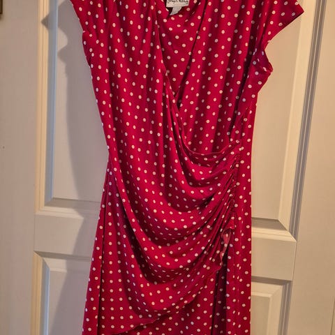 Som ny Joseph Ribkoff-kjole i størrelse 40 (US 10 / UK 12). Det er god stretch i stoffet så den passer både større og mindre (jeg bruker ca. 42). Detaljer på ermene of et design som gir flatterende figur. Enda finere i virkeligheten enn på bildene! Nypris var 2299,-