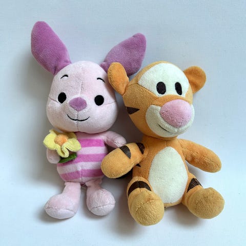 Ole Brumm kosedyr bamser kledd i ulike dyrekostymer. Settet inkluderer bamser i sine venners kostymer. Myke og små kosedyr med oppheng.