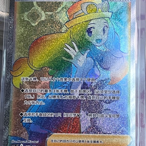 Selger pokemon kort trainer Sabrina's Suggestion full art fra Sun and Moon i strøken tilstand.