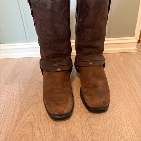 Anbefales at disse behandles med skokrem eller lærbalsam før bruk ettersom de har stått en del år ubrukt i bod.