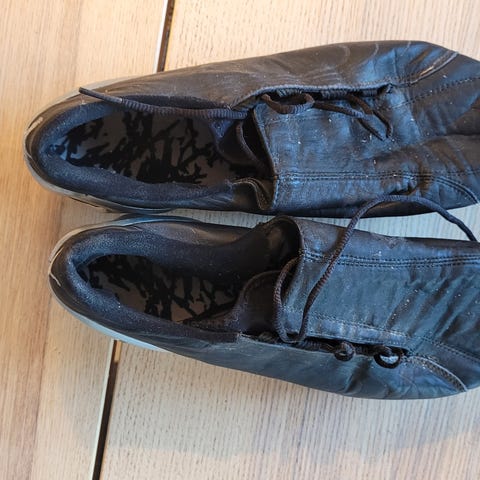 For slitte til å spille med. Såla på ene skoa har løsnet. Samleobjekt.