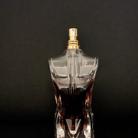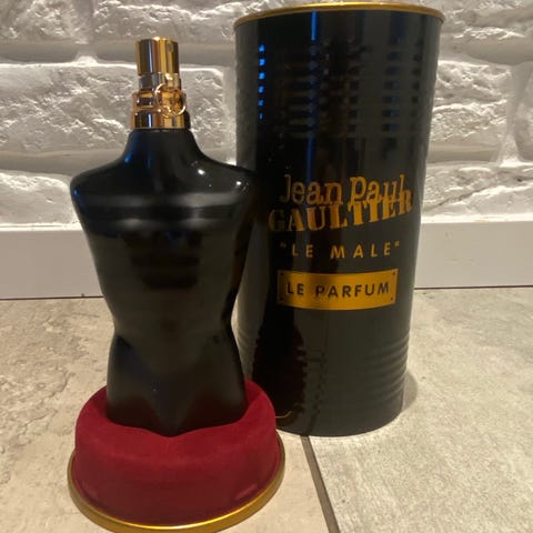 Jean Paul Gaultier Le Male Eau de Parfum Intense med en volum på 125 ml. Parfymen kommer i en svart flaske med gulltekst, designet for menn.