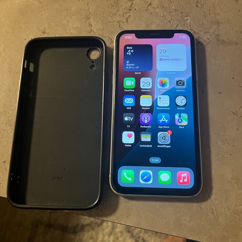 Apple iPhone XR mobiltelefon med 64 GB lagringskapasitet. Enheten har et svart ytre og er designet for personlig bruk.