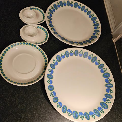 Nydelig vintage Figgjo-servise, designet av Turi Gramstad Oliver (Turi-design) i mønsteret Solveig.