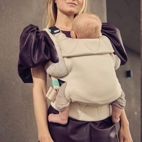 Najell bæresele i grå farge. Designet for komfort og støtte ved bæring av barn. Laget av mykt materiale som gir god passform.
