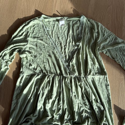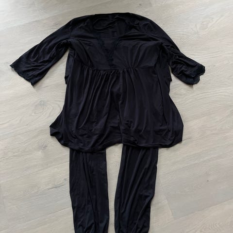 Tora pysj i størrelse M. Dette er den første utgaven, så jeg vil si den tilsvarer størrelse L. Toppen er ny med lappen på, buksa er brukt og vasket et par ganger. Noen få nupper i blonden. Viskose.