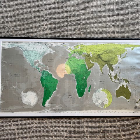 Vintage Veggkart STORT Philips New Commercial Map of The World til salgs