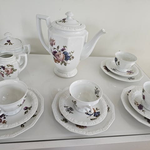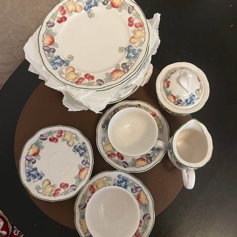Den er en del Classic Rose-serien. Har dekorative detaljer, med flettede detaljer , blader og blomster på overflaten, egnet for servering og oppbevaring av mat.
