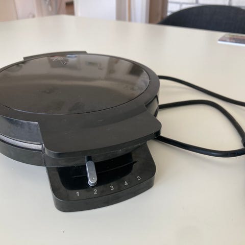 Moulinex “Break Time” – et kombinert vaffel-, toast- og grilljern (med utskiftbare plater), ikke et rendyrket belgisk vaffeljern, men det lager tykke, belgiske vafler.