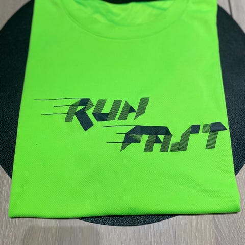 Løpegenser for herre i størrelse M. Genseren har svart basefarge med grønne detaljer på sidene og under armene. Den har en kort glidelås i front og er designet for løping. Brukt med mye levetid igjen.