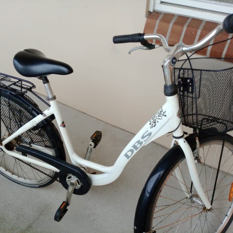 DBS City bysykkel for dame. Sykkelen har en ramme og er utstyrt med kurv foran. Den har gir med innstilling fra 1 til 7 fargen er svart.
