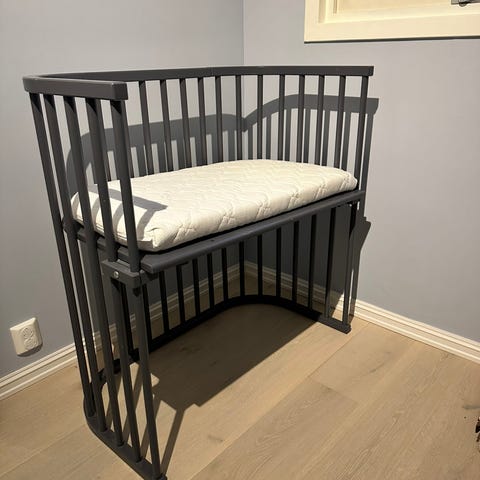 Bedside crib fra Troll selges. Kjøpt brukt her på Finn i høst, og selges nå videre da baby er klar for sprinkelseng ☺️. Den har bruksmerker på rammen, men ellers i fin stand, og fungerer fint til formålet.