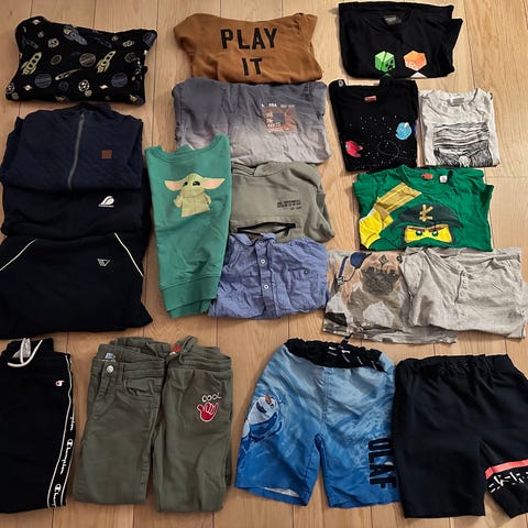 Dobbelt sett Champion Barneklær 122 Flerfarget Unisex for tvillinger. Inneholder ulike plagg som hettegensere, bukser og t-skjorter laget for barn. Materialer og detaljer varierer mellom plaggene.
