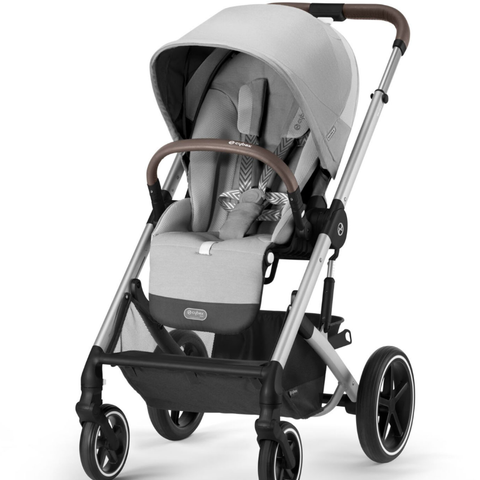 CYBEX Balios S barnevogn i grå fargetoner. Vognen har justerbart håndtak, fempunkts sikkerhetssele og solskjerm.
