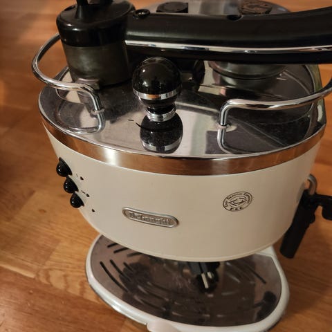 DeLonghi kaffekvern med justerbar kverninnstilling og beholder for malt kaffe. Designet i rustfritt stål med svart plastdetaljer. Egnet for hjemmebruk.