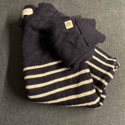 Pent brukt av et barn, ingen hull eller slitasje utenom små flekker, som maskinen ikke har tatt , da den er vasket på ullprogram, som ikke er den beste, så flekker kan nok vaskes noe bort om man gjør litt for det med sitronsåpe osv.
