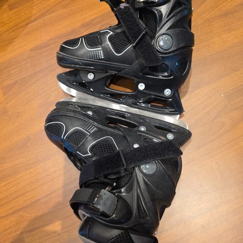 Xride PW-323 ishockeyskøyter for barn i størrelse 33.-36 justerbare. Skøytene er i svart farge og designet for ishockey. Materialet og detaljer er tilpasset for å gi støtte og komfort ved bruk.
