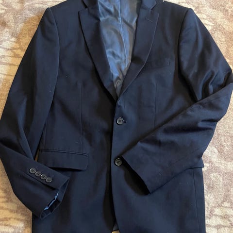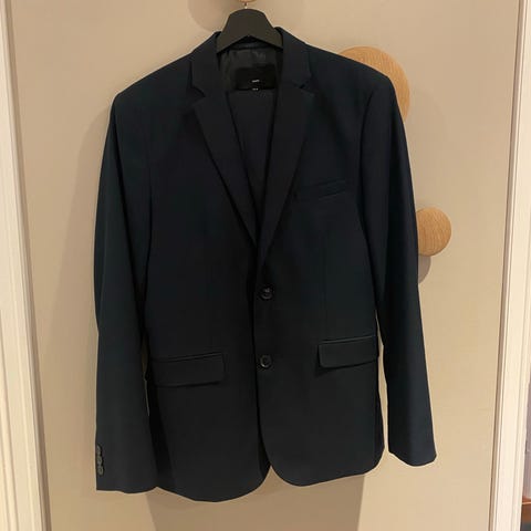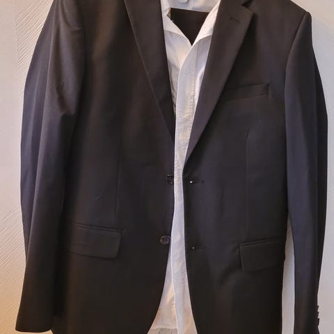 H&M dressjakke og bukse for herre i størrelse 48.- slimfit. Dressen er svart og laget av polyester.