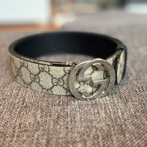 Lite/sjeldent brukt Gucci supreme reversible belte i str 70. Kjøpt i Gucci oslo. Kvittering og alt av tilbehør fra orginal butikken følger med.