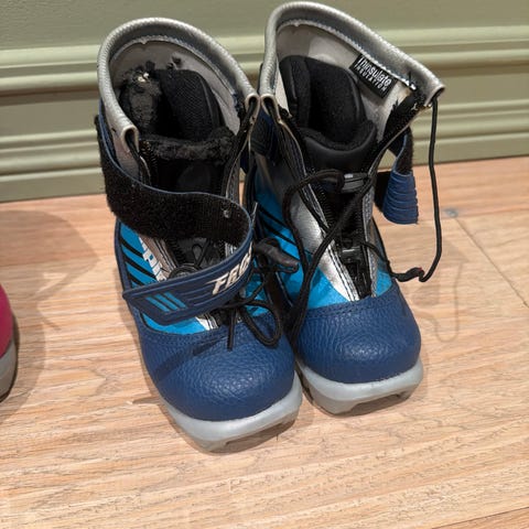 Godt brukt, er i skinn. Kan fremdeles brukes, men ser godt slitt ut.