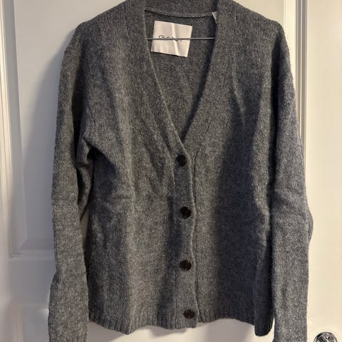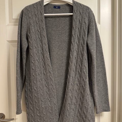 GANT cardigan i oransje farge, størrelse M for damer. Laget av bomullsmateriale; 88% bomull / 10% polyamide / 2% elastin. Armhule til armhule 50 cm. Høyde 67 cm. Cardiganen har glidelås og et strukturert mønster. Middels tykk, halvhøy hals. Ingen skade. Ikke brukt, ikke slitasje. Nyrpis 1350,- Jeg kan sende om ønskelig.