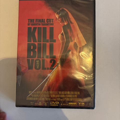 Kill Bill Vol. 2 DVD med en spilletid på 131 minutter. Filmen er en del av The Final Cut-serien og inneholder spesialfunksjoner som The Making of Kill Bill og Director's audio commentary. DVD-en leveres i et svart plastcover.