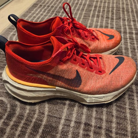 Nike ZoomX Invincible Run 3 løpesko i størrelse 36. Fin fargekombinasjon, passer for løping. Passer desverre ikke mine føtter. Brukt et par ganger utendørs. Ny pris nærmere 2000,-